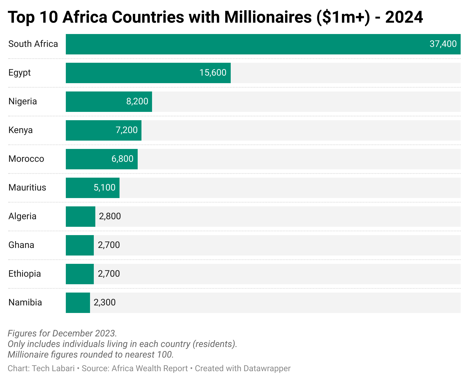 Top 10 African Countries with Millionaires ($1m+)