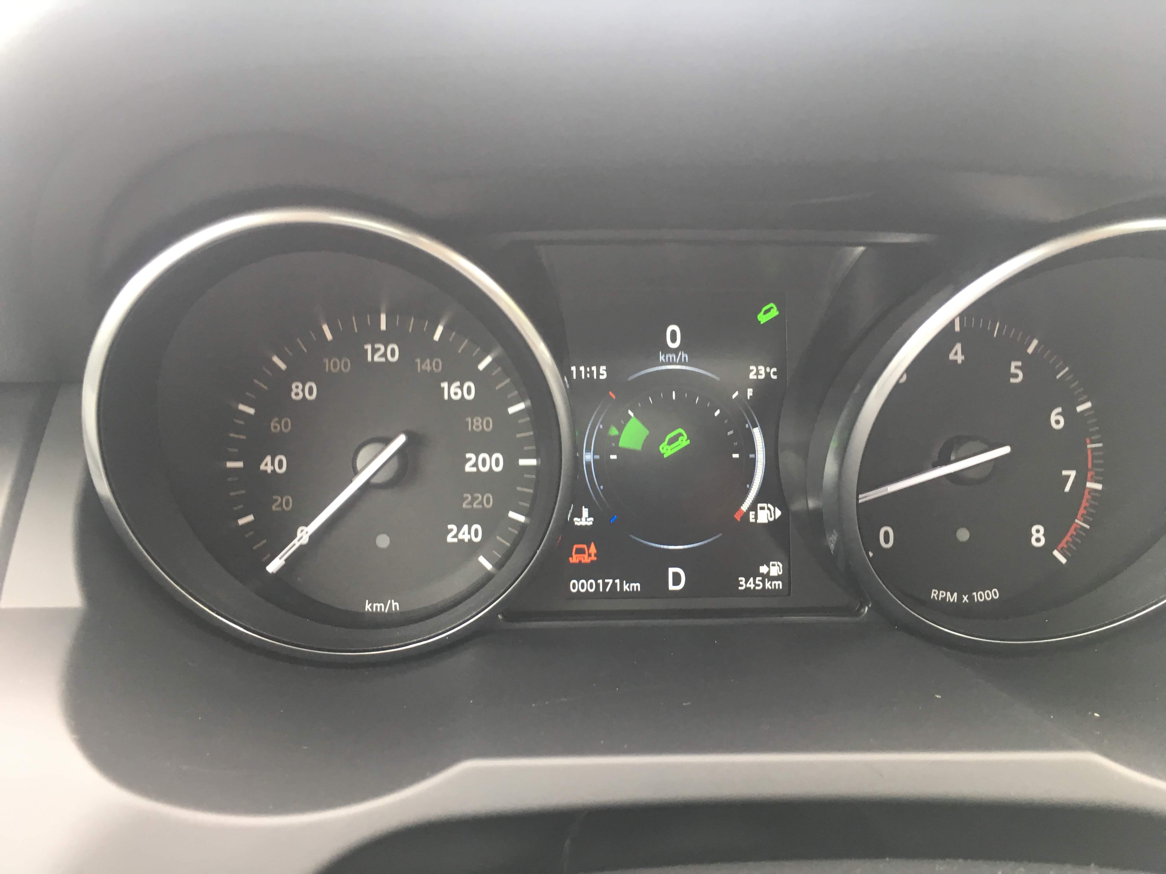 The interior of the Range Rover Evoque has an interesting setup. You have your standard driver dashboard with a LCD screen in between the instruments. The screen displays your fuel and oil gauge as well as the mode that the car is in. If you switch from regular to off-road, the screen gives an indication for the switch.